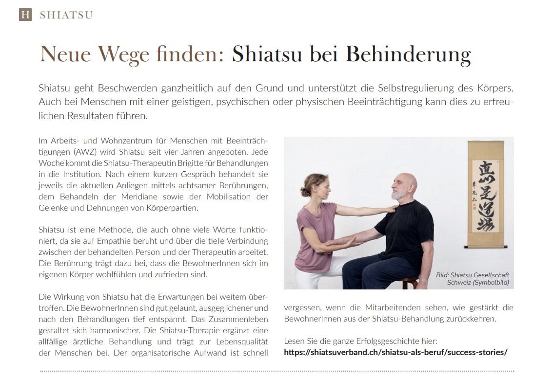 Die Shiatsu Gesellschaft Schweiz wirkt als Berufsverband für rund 1‘000 professionell praktizierende KomplementärTherapeutinnen und -Therapeuten der Methode Shiatsu. Hier finden Sie eine Therapeutensuche, ausführliche Informationen zur Therapie sowie Informationen über unseren Beruf und den Berufsverband.